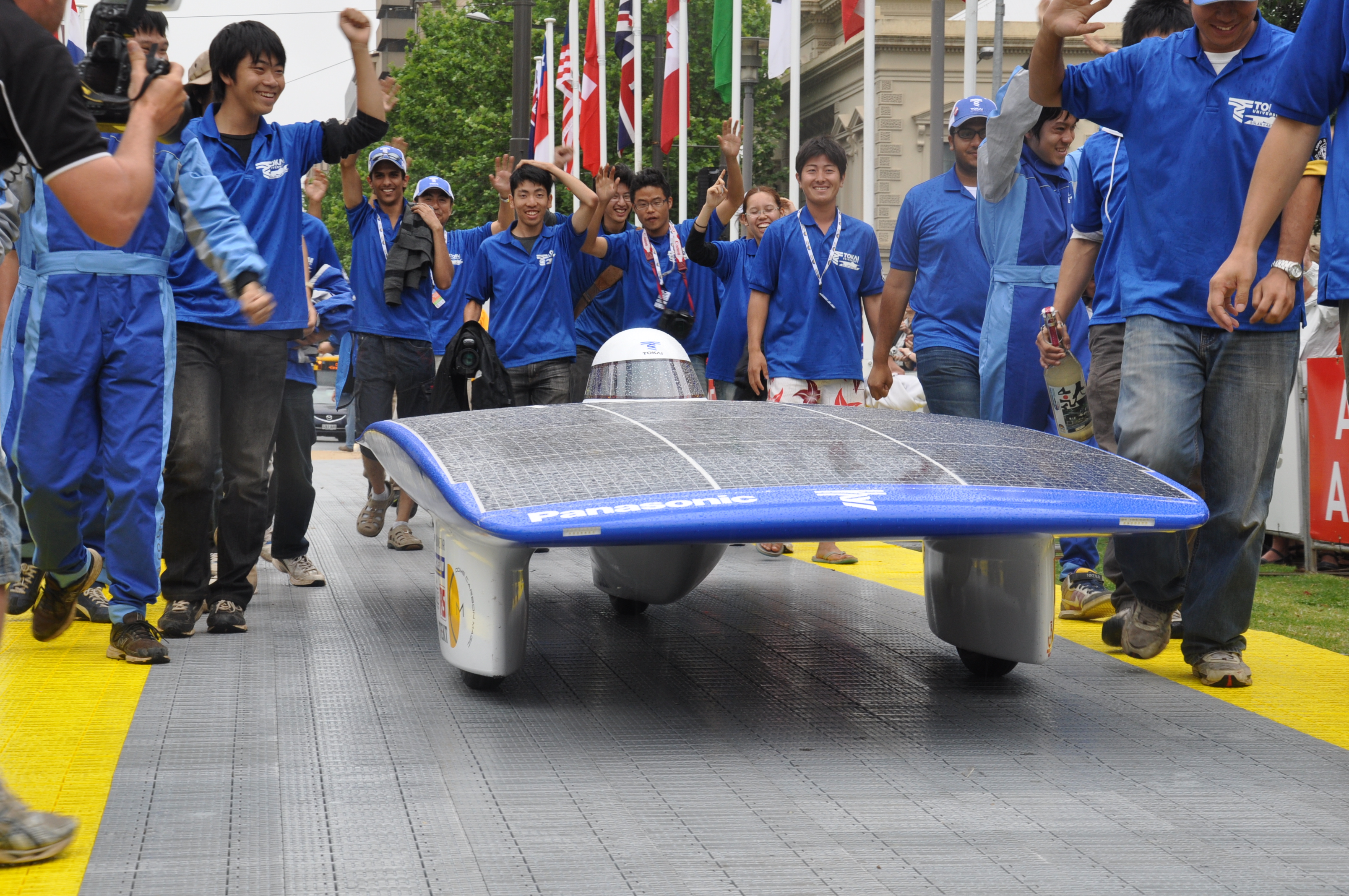 In the closest finish in the history of the WSC, mere minutes separated Tokai and second placed Nuon Solar Team from the Netherlands. Third placegetters University of Michigan (USA) were themselves only a short distance behind. The close finish is remarkable given the distance travelled and time spent on the road. Ashiya University, of Japan, and Team Twente, also of the Netherlands, are further behind vying for fourth place and expected to finish Friday, as is Team Aurora of Australia, not far behind Ashiya and Twente.